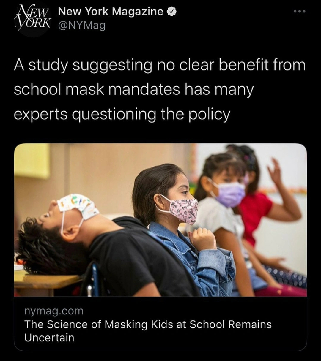 The mandates have destroyed hundreds of millions of lives around the world, put 8M Americans into poverty, permanently closed hundreds of thousands of businesses, caused more suicides and drug overdoses than deaths by "covid" in many places, killed 10k children per month in poverty stricken places around the world due to market closures, in top of unknown devastation which is only just beginning to be seen and understood. All while it's been clear since early 2020 nothing being pushed is based on rigorous science, logic and reasoning.
