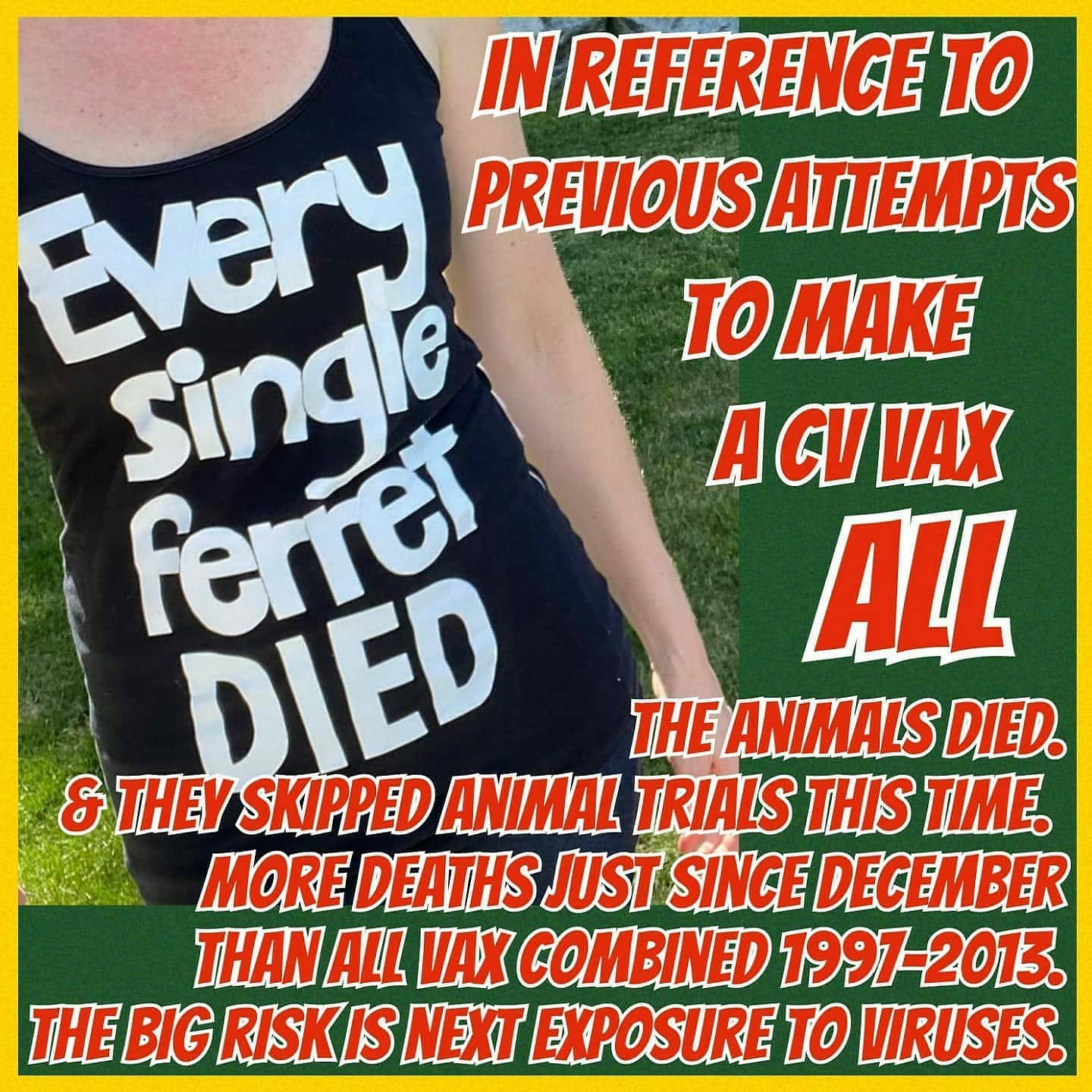 "Vaccines" (experimental dna-altering injections, most of them) for covid19 are not FDA approved, are still in trials, are simply "emergency use authorized" and very dangerous. Simply look at prior attempts to make a coronavirus vaccine—they killed ALL the animals in trials when the animals were later exposed to other viruses. As University of Rochester MD PHD and Bethesda Naval Hospital Dr Lee Meritt says "it wasn't subtle!" Such animal tests were SKIPPED this time!!!! 🤯