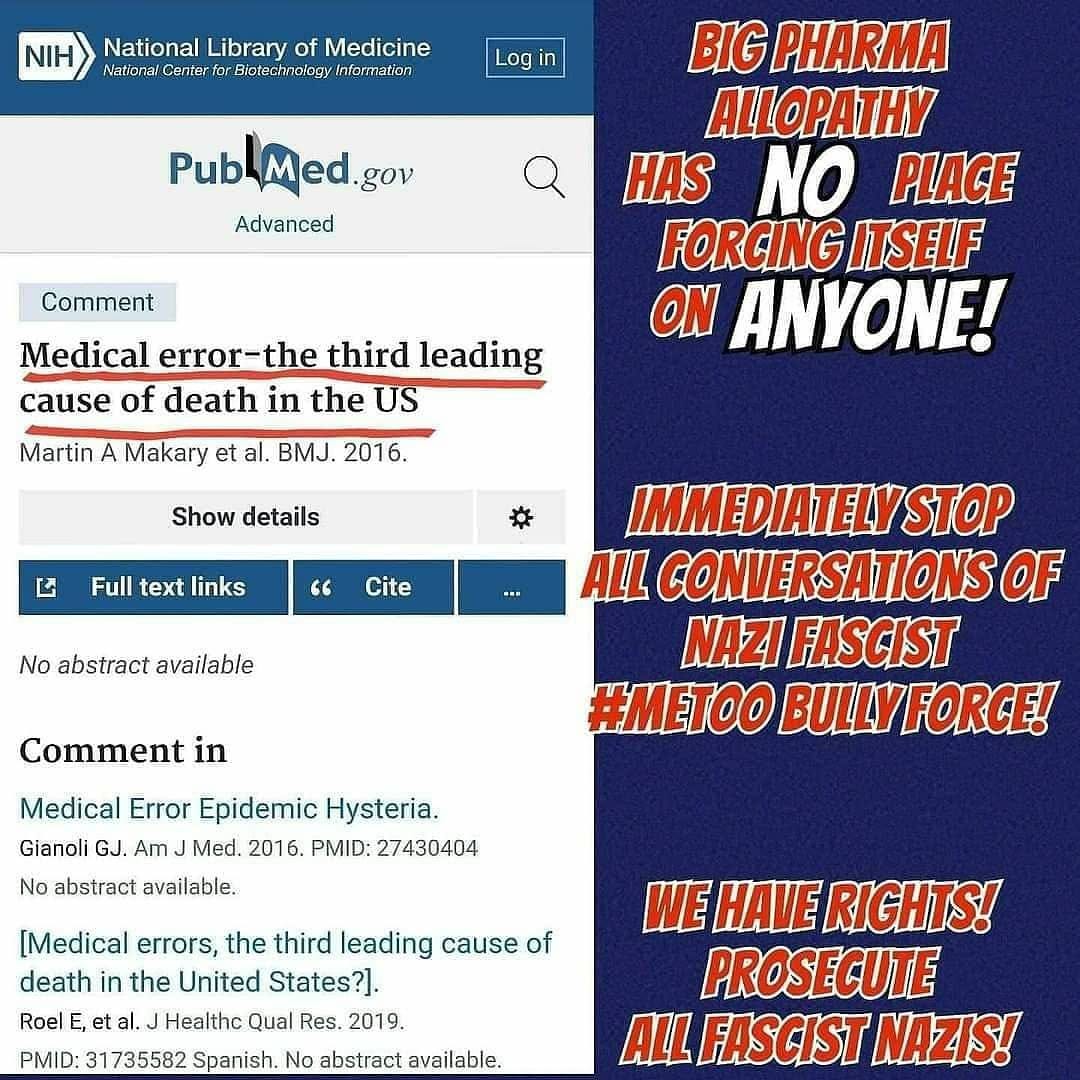 PLEASE inform yourselves and immediately stop pushing what amounts to a Nazi fascist cult--dogma (a belief system founded on nearly unending layers of fraud)-- NOT real science--on people who neither desire nor need medical “care", especially "care" that carries very serious possible adverse reactions including death! I haven't had a symptom of any kind in years, not so much as a cold since swearing off of mainstream medicine (allopathy- again, per the study I've attached, "errors" being the 3rd largest cause of death in this country! Possibly higher now!). The study is also in my documentary and the paper I link below. I will also attach the previous cv vax attempt study warning DANGER to humans.