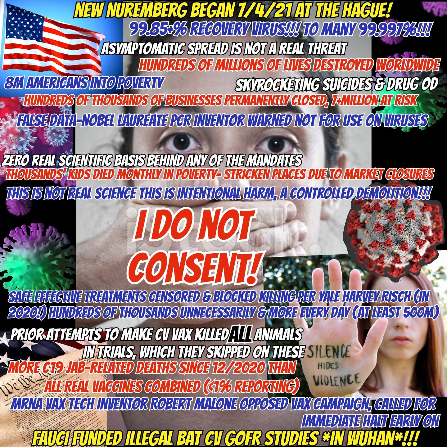 The only way to not see the truth about what's happening is to not look, be brainwashed, or be in on it and not care about hurting others. PLEASE carefully analyze what we've sent. You owe it to the oath you took and the people whose lives you can seriously harm by pushing medical treatments and harmful pseudoscientific mandates on FREE, SOVEREIGN people who have no need or desire for them.