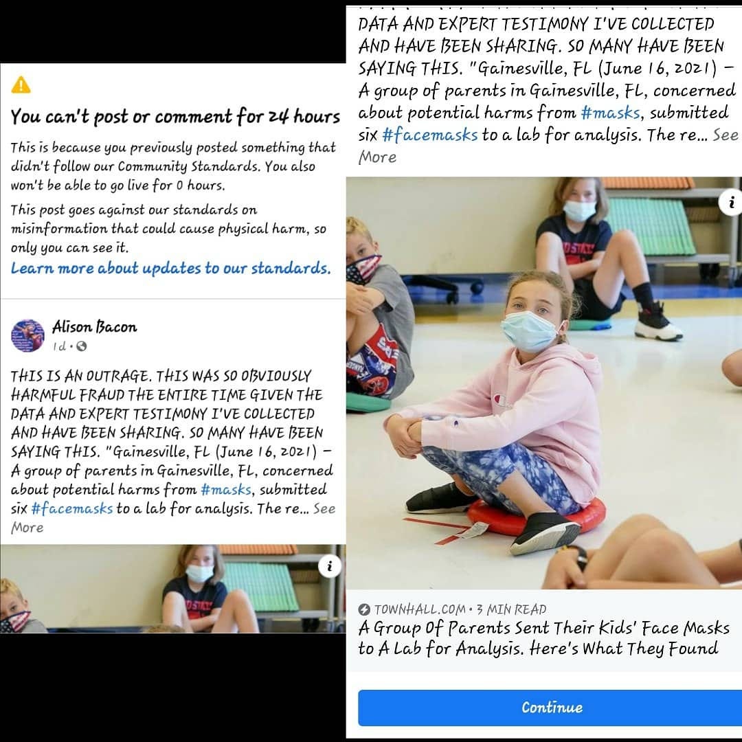 “Gainesville, FL (June 16, 2021) – A group of parents in Gainesville, FL, concerned about potential harms from masks, submitted six face masks to a lab for analysis. The resulting report found that five masks were contaminated with bacteria, parasites, and fungi, including three with dangerous pathogenic and pneumonia-causing bacteria. No viruses were detected on the masks, although the test is capable of detecting viruses.