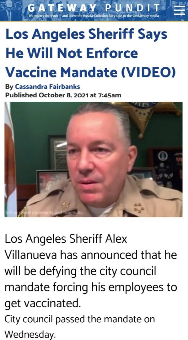 Letter to all US Sheriffs, particularly Alex Villanueva, head Los Angeles Sheriff