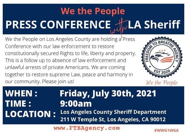 It is clear that Los Angeles, CA does not have a lawful government. We ask that you join us to hold a peaceful conference with the Sheriff to comment on the situation.”