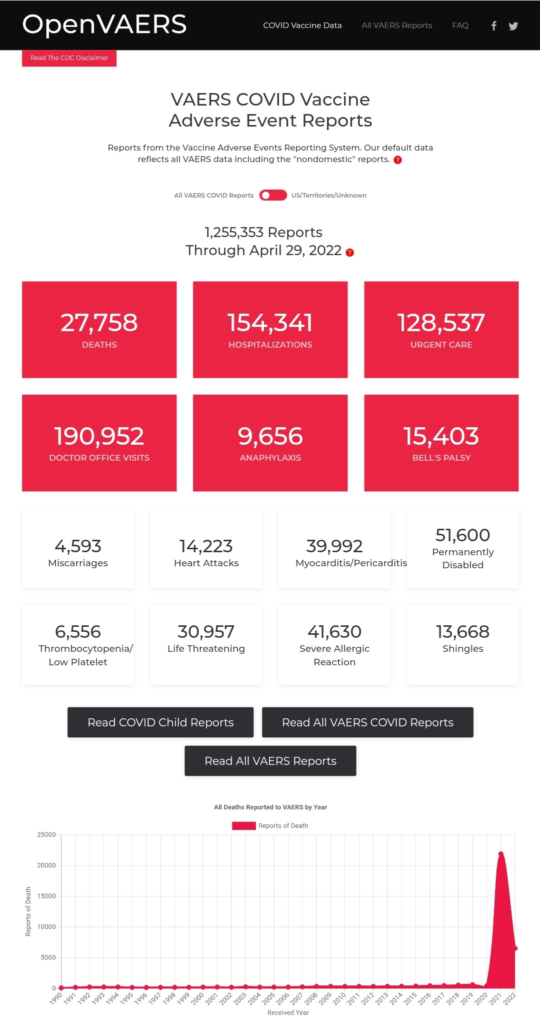 All other steps: the social distancing, the lockdowns, the mask mandates, etc served only to give the population firstly: a visible reason for an otherwise illusionary panic creates solely through psychological operations, and secondly: to subjugate them so that they would agree even to the so-called "vaccinations". In reality of course these "vaccinations" are experimental gene therapies without any scientific study as a basis. There is neither a reason nor even a necessity for them. Firstly: there's no evidence for a pandemic; only the fake Drosten PCR Test with its false positives is responsible for "public health emergency of international concern"... and secondly: there are effective alternative treatment methods and as a rule, a human immune system is very well-equipped to fight viruses - even man-made viruses. Apart from that, the "vaccinations" lack any effectiveness as a very recent study by Science Files has just proven concerning Biontech/Pfizer. And on top of all this, these shots are extremely dangerous as the latest official figures from the US prove. ... the mainstream media and the politicians which are both under the control of the global corporations and the global NGOs are doing everything in their power to make registration of vaccination adverse events as difficult as possible.